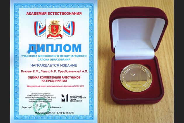 В рамках реализации данного решения научная статья «Оценка компетенций работников на предприятии» (опубликованная в журнале «Международный журнал экспериментального образования», авторы И.Я. Львович, Н.Р. Лелеко, А.П. Преображенский) была отобрана для представления и обсуждения на Московском международном салоне образования 2016, проходившем на ВДНХ 13-16 апреля 2016 г.